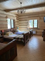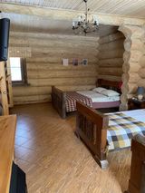 2 этаж: спальня (одна двуспальная кровать, диван раскладной, туалет, душ, фен, спутниковое ТВ).