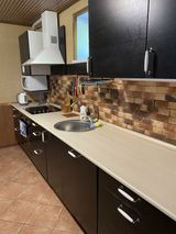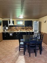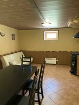 Цокольный этаж: кухня (плита, духовой шкаф, микроволновая печь, посудомоечная машина, холодильник, чайник, посуда), камин на дровах, диван, санузел, стиральная машина;